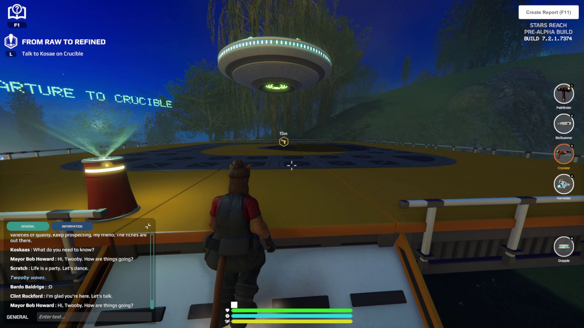 Crucible is the new planet players go to, right after finishing all chores on Haven. A little flying saucer acts as a shuttle transport, that players can take to travel back and forth between Haven and Crucible.