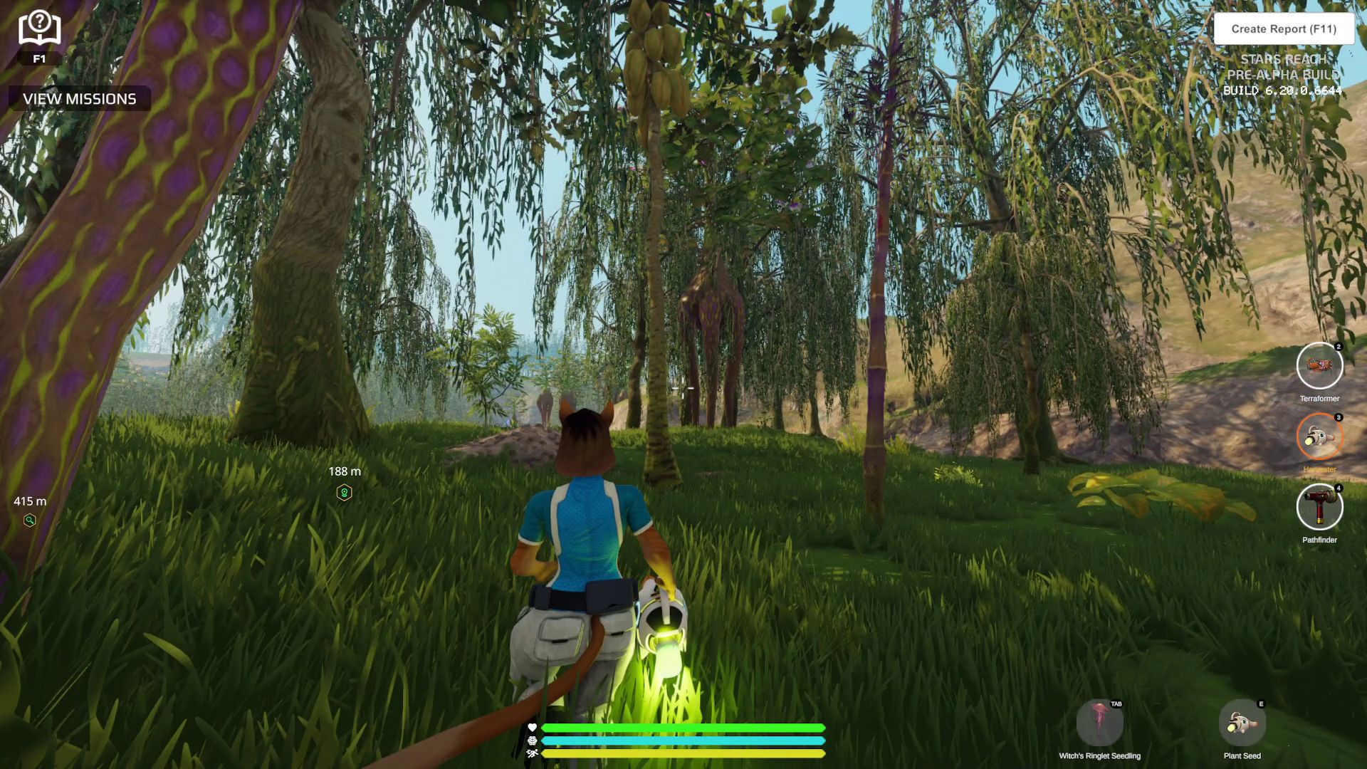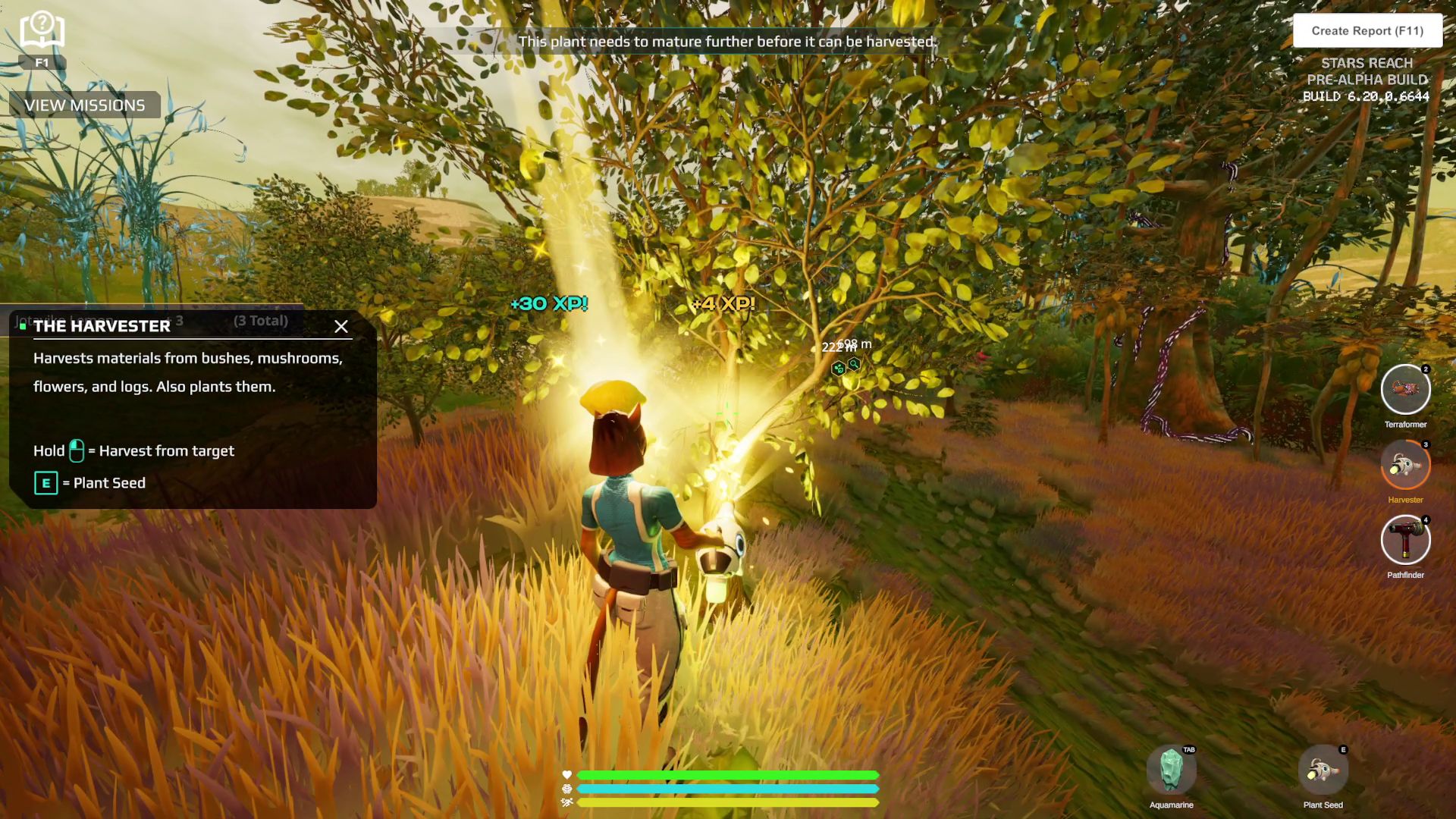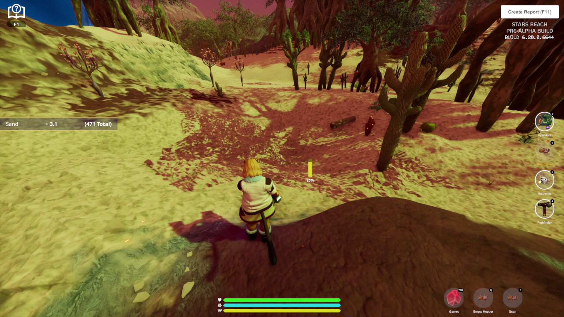 Up until very recently, all (preliminary) crafting recipes where very simple: Bunch of raw materials go in, final item comes out. This is slowly starting to change, as a mid-patch update during the previous test cycle added the first intermediate components. You can no longer make a Terraformer from just some metals, sticks and stones - you have to craft several parts first, and then combine those into the Harvester. This does complicate and slow down things significantly. I was easily able to craft some tools (like for example a few Xyloslicers) that still follow the old recipes during my first evening of playing. But then I went to bed, and when I returned on Sunday morning, it still took me a while to finally make my first Terraformer (which still were rare at that point - as not many other players had yet made some either.)