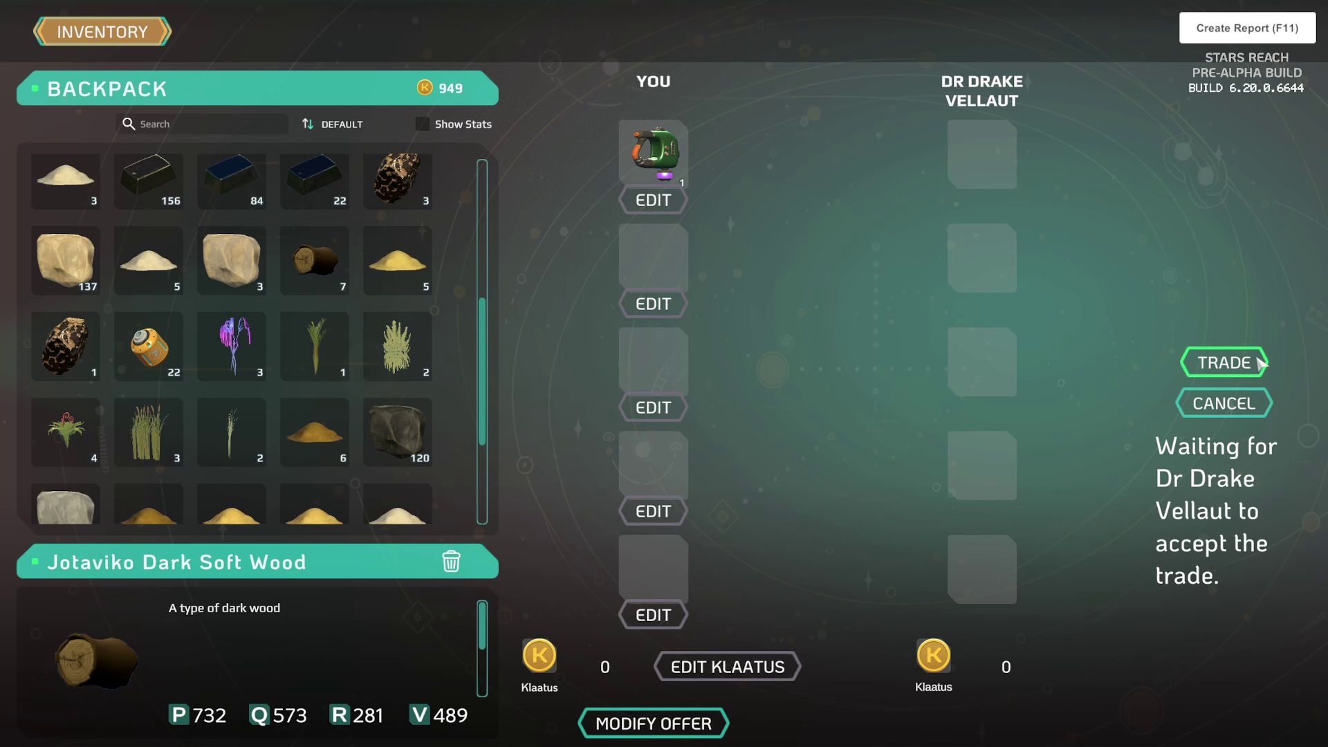 And since there are plans in place to give away such items to other players as rewards, or sell them for Klaatus - I’ll have to be prepared to potentially craft larger numbers of these. Therefore resource availability is going to play a huge factor as well. Can’t rely on materials from old wild planets that are no longer accessible. And if I do rely on something from a new wild planet, I have to make sure to get a nice amount of that, while the wormhole is open. The goal here is, to really try and start testing the first few economy features that are now available in the game.