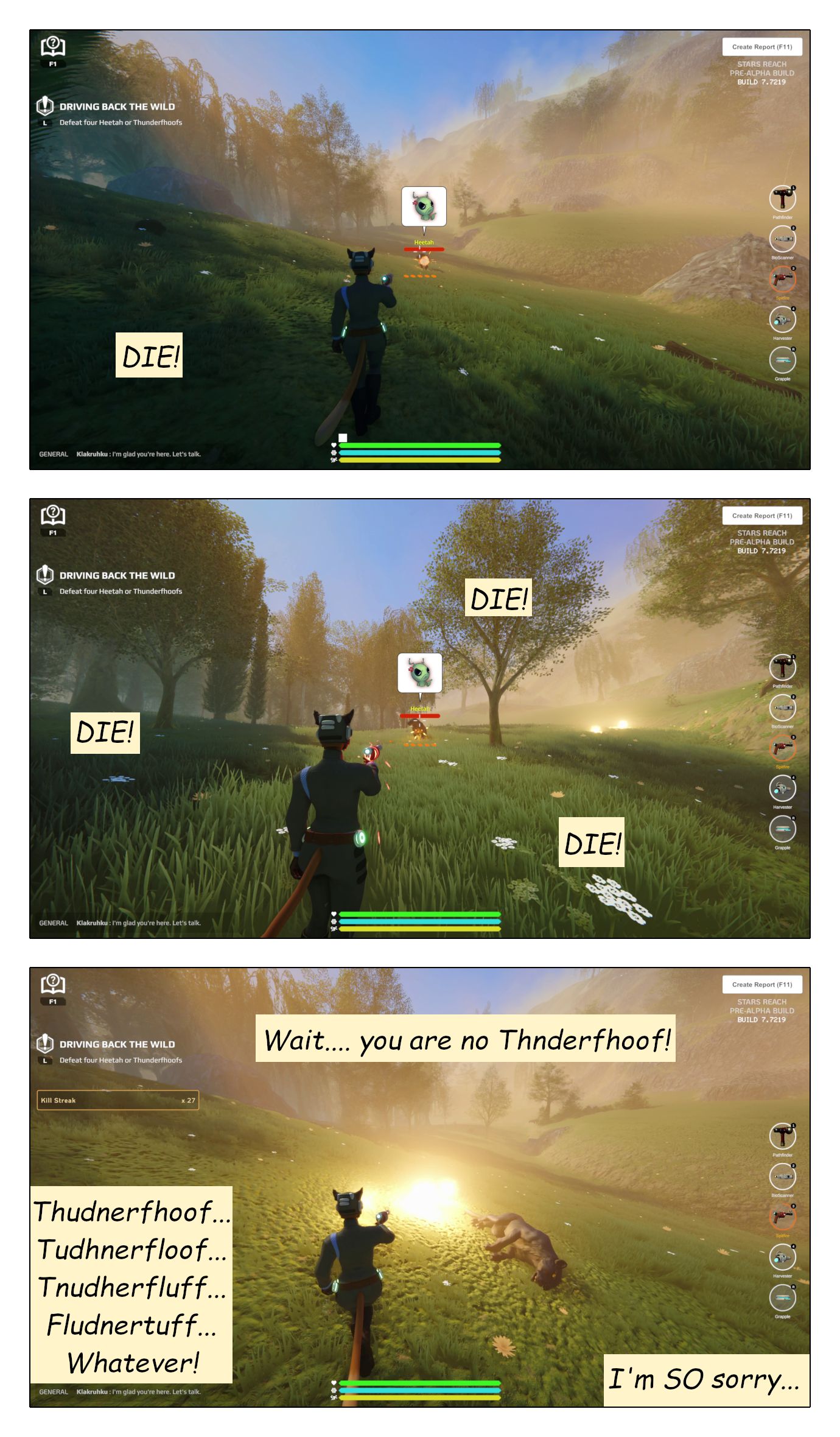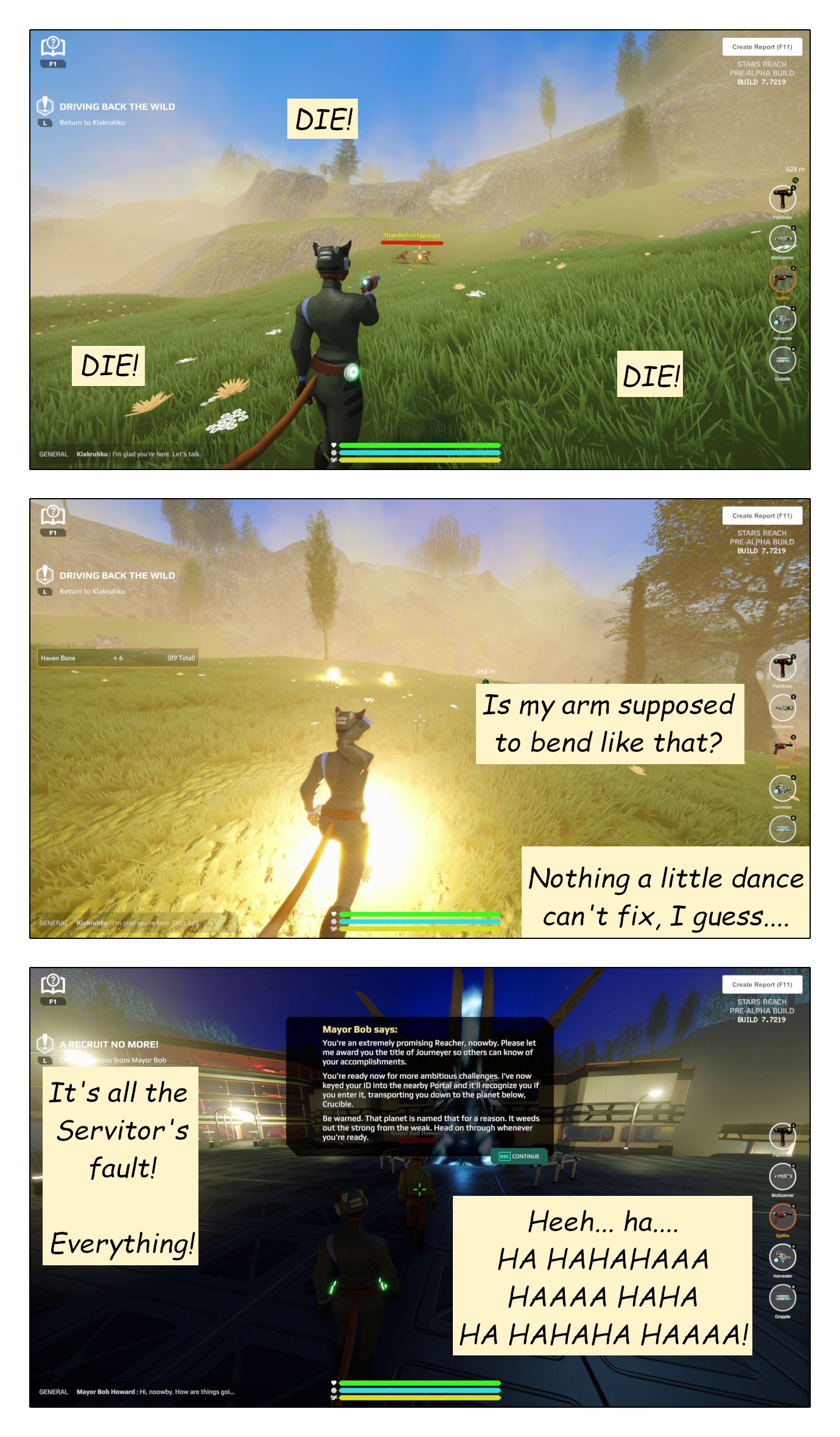 I decided it would be fun to document this first version of Haven by doing a humorous look at it, from the perspective of a fictional newbie player “hooby the noob”, who’s playing for the first time. Thus I present to you: