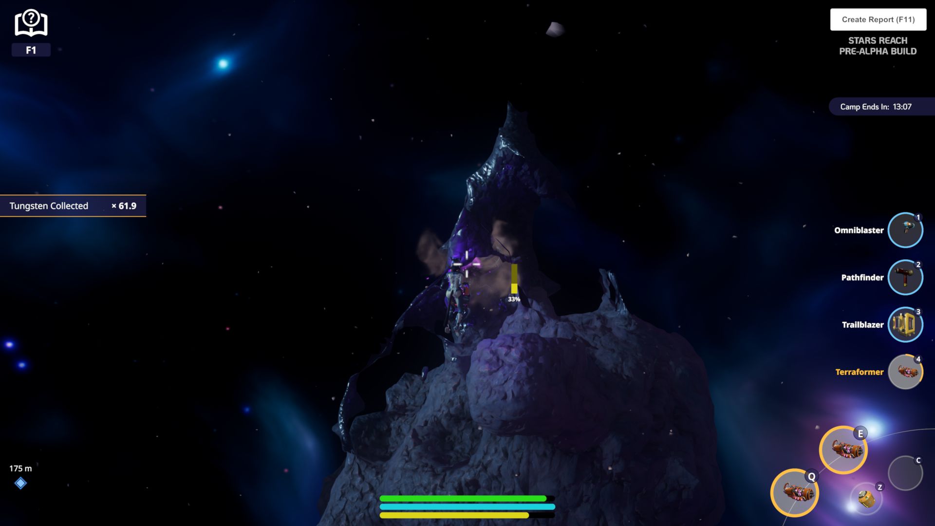 There were a few complications along the way, that cost me some extra time. Like for example, when trying to harvest metals in space, I repeatedly ran into issues with Ball Hives being stuck inside the geometry of asteroids - able to shoot out from there, where I could shoot them, as the my shots didn’t go through in that direction.