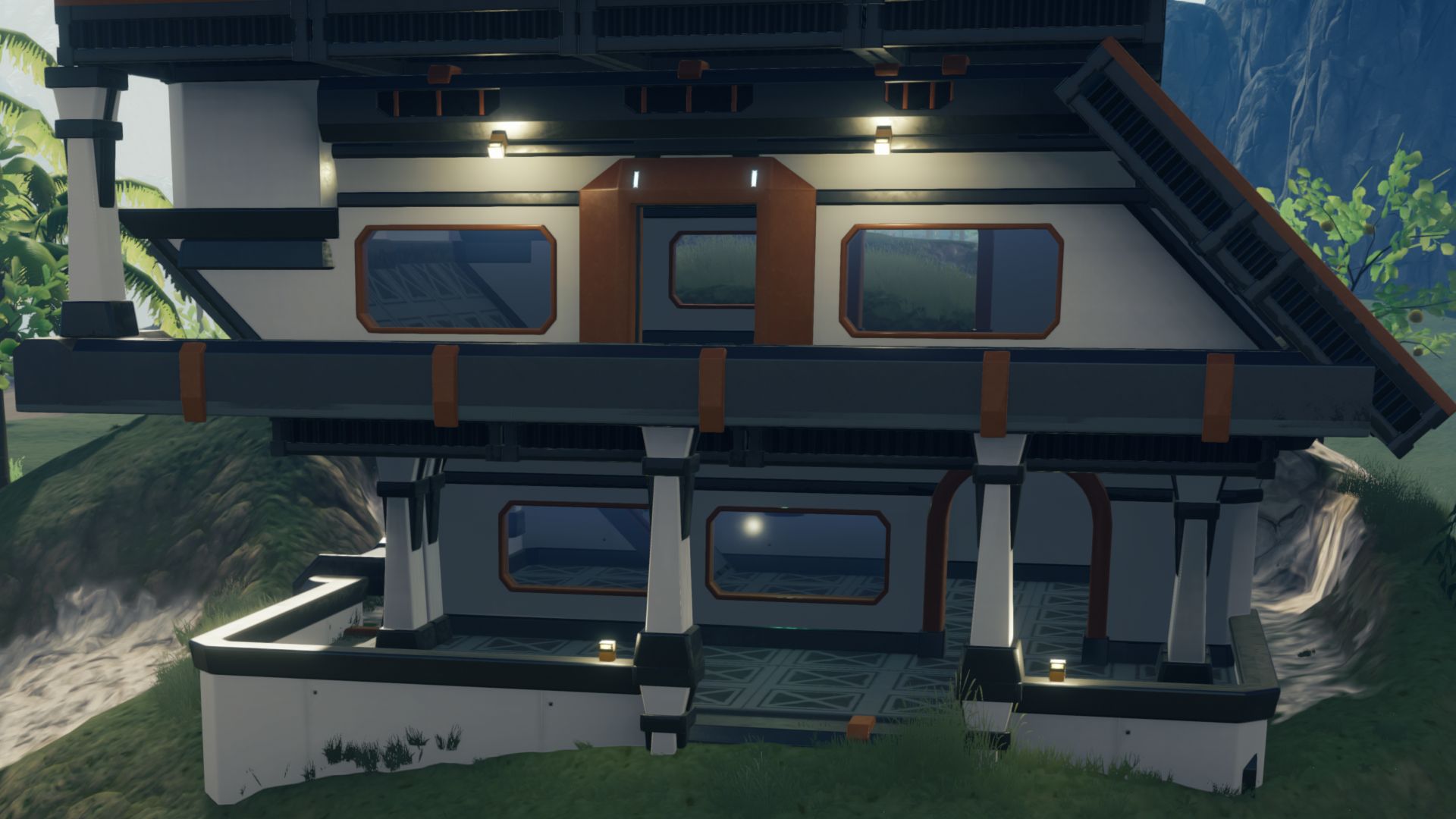 But I tried to build something a bit more creative - not just a plain box. And I think I did achieve that - so I’m pretty happy with that. You can’t look at it too closely - there’s some gaps letting through light, there’s Z-fighting everywhere, many places where things just don’t line up right. That’s because I’m using building pieces in places and orientations they were not meant to be used.